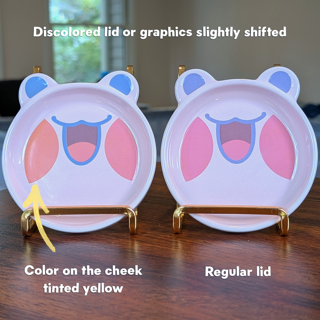 🐸 Defects may consist of: Discolored lids, faint or wonky lines